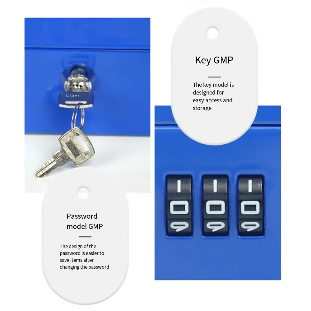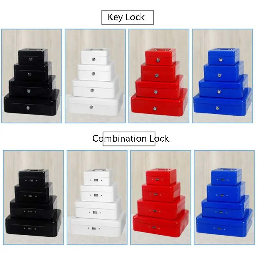 Small/Large Locking Cash Box Safe Double Layer Lock Storage Box Key Lock/ Password with Combination Lock Money Saving Organizer